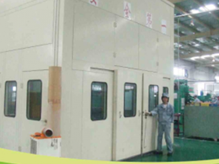 一类是因为机器体积较大,设备考试频繁又需进行手工操作,此时只能采取一个大的 房间把机器围护起来,并设置门、窗跟通风管道。冲床隔音箱顶部安装了低噪音大功率的排气风机,使得隔音箱内部的温度保持均衡。有效的保护了冲床的准确度。此类隔声间类似一个大的 隔声罩,只是人能进入其间。另一类隔声间则是在高噪声环境中隔出一个宁静的 环境,以供工人察看把持机器运行或是休息用,按实际须要也要设置门、窗跟通风管道。